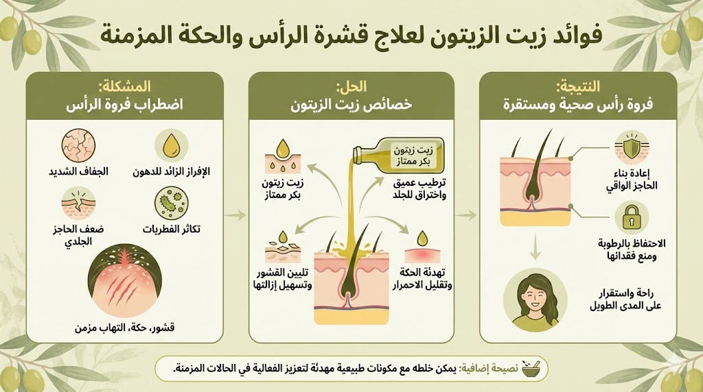 فوائد زيت الزيتون لعلاج قشرة الرأس والحكة المزمنة
