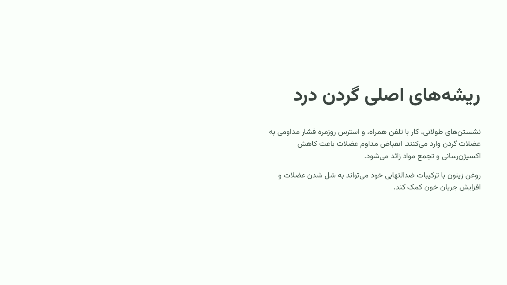 تاثیر روغن زیتون بر گردن دردهای ناشی از استرس و فشار عصبی